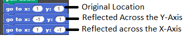 An image shows translation when it is copied and glides to a new position. We can think of the image to the right as having been created by taking one of the circles with a dot inside, and repeatedly copying and gliding until there are four. This symbol is called Ntesie - Mate Masie, or "I have heard and kept it." It represents knowledge and wisdom based on the proverb, "Deep wisdom comes out of listening and keeping what is heard." The script you would need for simulating Ntesie could be created either using the “change x by” block or the “translate by width” block. Similar blocks can create vertical translations (“change y by” block or the “translate by height”).