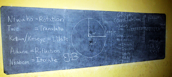 Math teachers in Kumasi, Ghana have translated these terms from English into the local language, Twi. Below is a table of these translations.