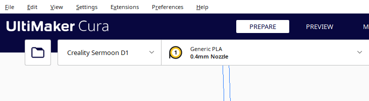 Once Ultimaker Slicer is installed and opened, select desired printer from the menu of printers (only applicable if