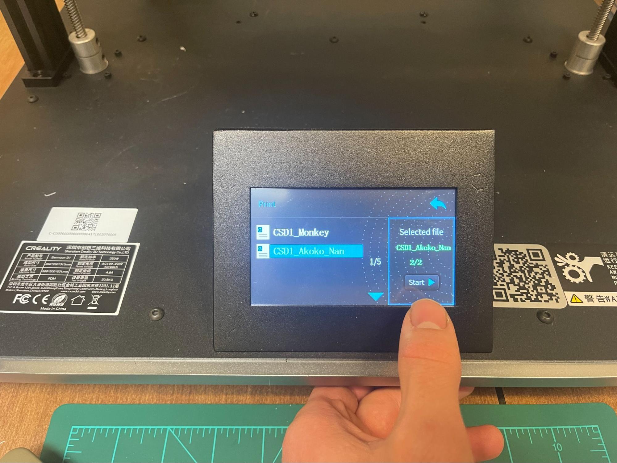 - Your exported file should be visible, select it, press start, and allow the print to begin!