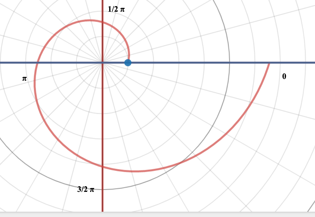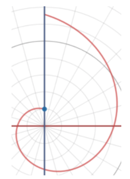 Besides the radius, we could also draw a tangent line for each point on the spiral, which will always form a consistent, fixed angle with the radius line, as annotated below.