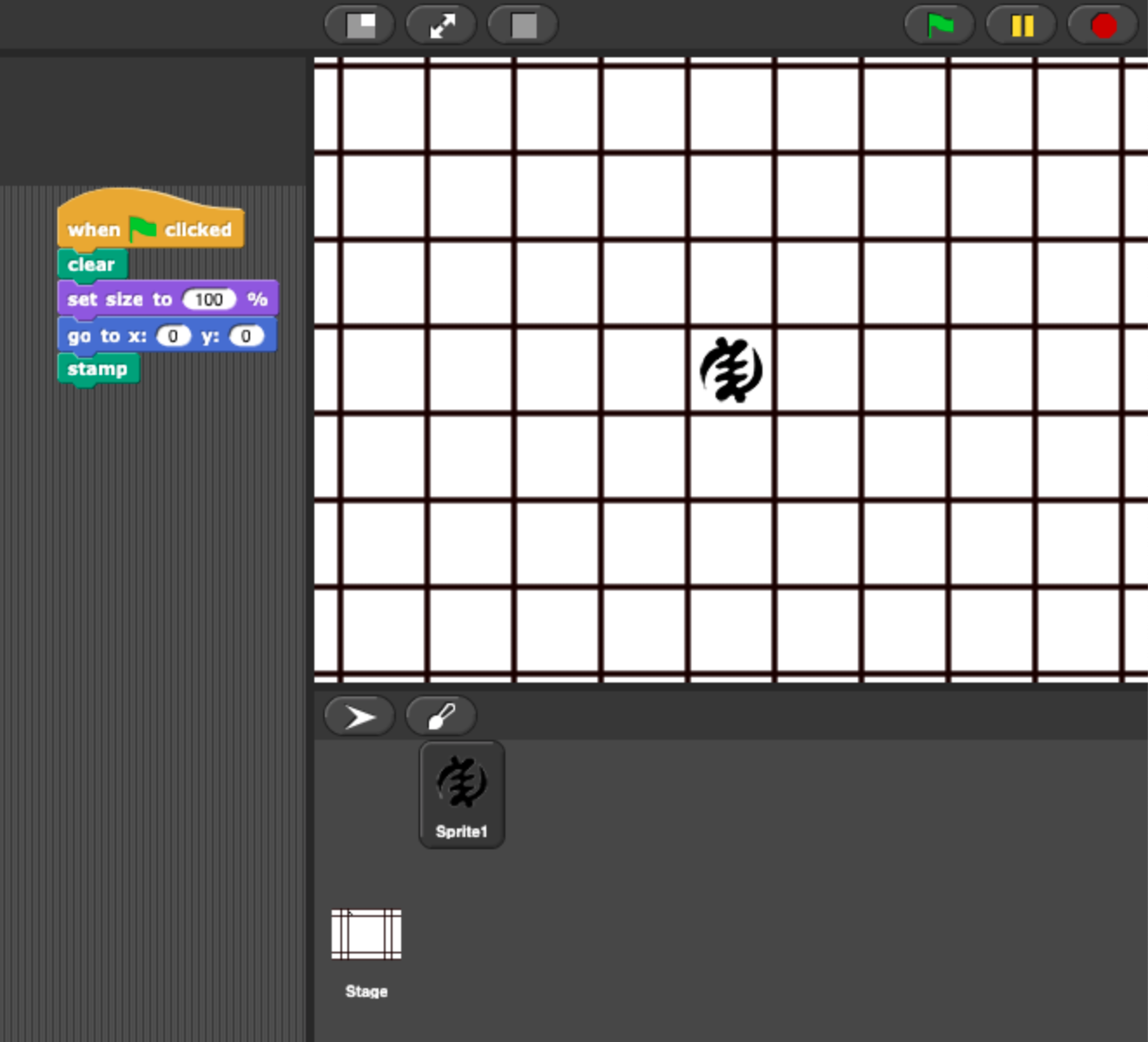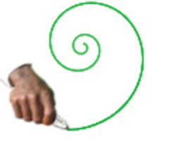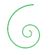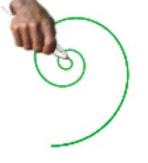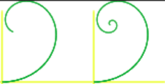 Absolute: If the spiral was some object, like a spiral shell, you could imagine placing that shell anywhere on the stage. In the pen growth examples above, you could see the yellow lines forming grids, such that the center of the shell was exactly at the center of the grid. This absolute coordinate system places the spiral somewhere on the CSDT “stage”-- For example here the gyenayme symbol is at 0.0