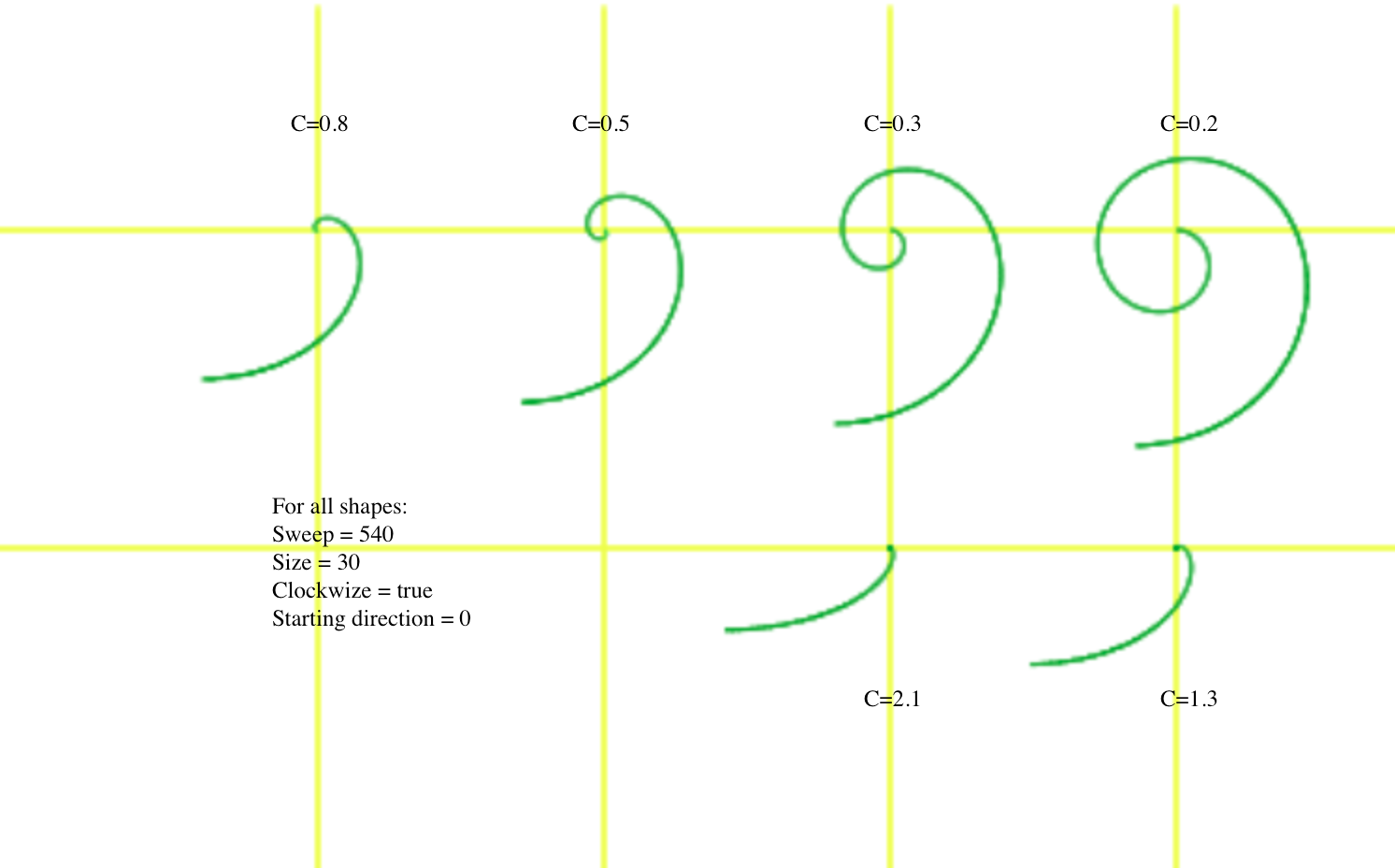 Note that if sweep is positive, as in the examples below, we draw from the center, spiraling outward. If the sweep is negative, we start from outside, spiraling inward.
