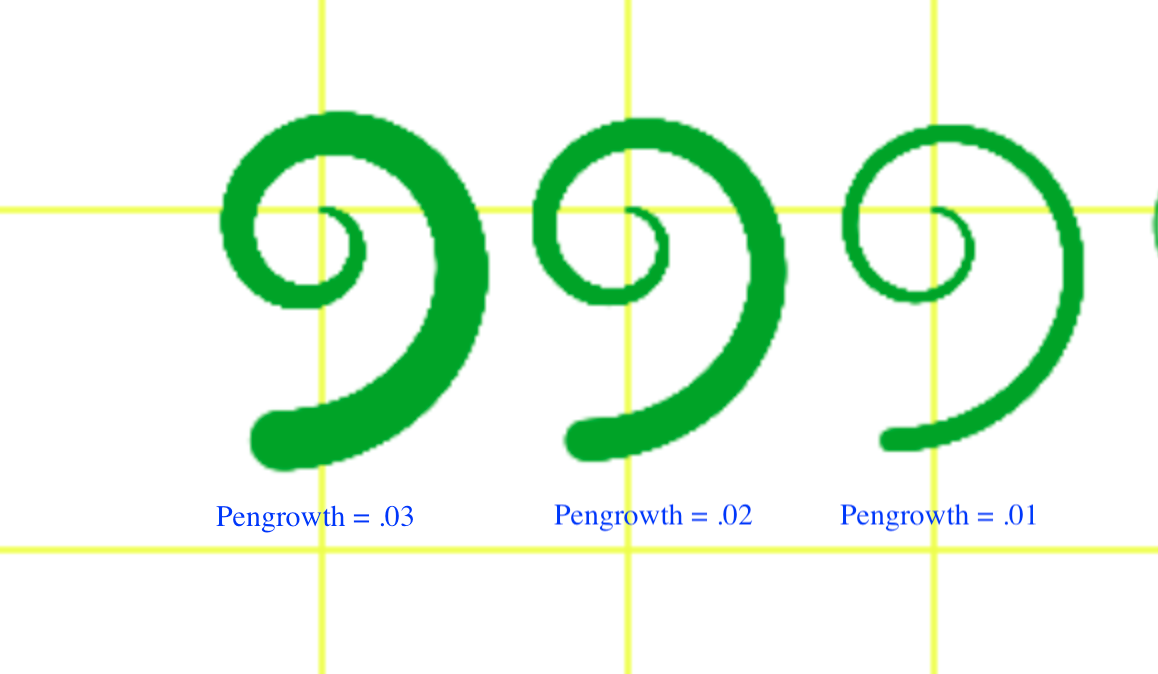 - Pen Growth: how quickly the thickness of the line grows. It can also be negative, shrinking the thickness.
