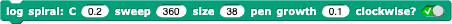 Inside the log spiral block in the CSDT Software you can see 5 parameters. Before we dive into the script, let's clarify the parameters: