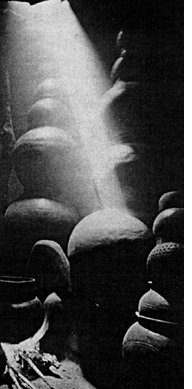 Scaling stacks of pots and bowls continue the recursion to even smaller scales. The stack of bowls is called a "zalanga", and the smallest bowl is the "kumpio", a shrine for the female head of house. When she dies, the zalanga is broken and her soul is released to eternity. While the scaling of the architecture maps life from birth to death, the zalanga models life in reverse—from the circles of the largest bowls to the tiniest holding the soul, from mature adult to the spiritual realm of ancestors who dwell in the “earth's womb.” There is a conscious scheme to the scaling circle of the Nankani: a recursion that bottoms-out at infinity, marking the passage of life and death.