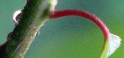 Here we see an example from a kiwi vine: the older woody stem is passive, and the young red shoot is active. When it grows old enough, it will be the passive source of a new vine in the next "iteration". The spiral fern above does this as a continuous gradient, so its a little easier to see the process in discrete stems.