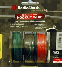 Use solid core, 22 gauge “hookup” wire anytime you are connecting to the protoboard. Use electrical tape or (better for permanent) heat-shrink tubing over wire joins to prevent shorts.