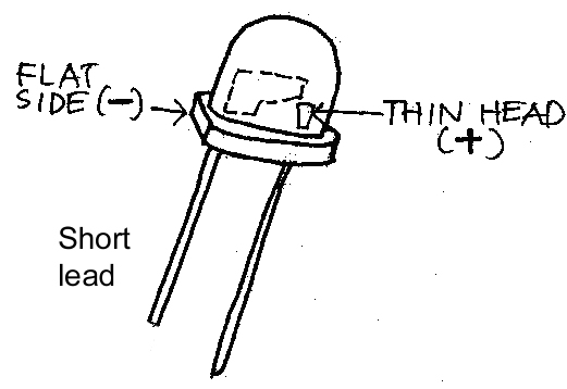 Light-Emitting Diodes (LEDs) are relatively rugged, long-lived optical sources. They must be connected with the correct polarity (longer lead is +).