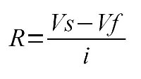 i = LED forward current in Amps (found in the LED datasheet, around 0.01amps)
