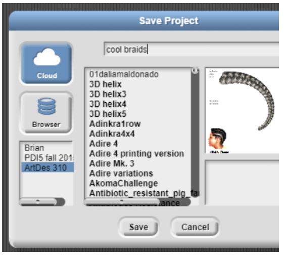 Give it a name (I called it “cool braids”) and if you have a classroom, select it from the class list (in this case ArtDes310):