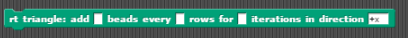 Both of the triangle tools fill in a triangle of stitches. To do this, specify the number of weaves added every certain number rows. Then specify the number of rows you want and the direction of the triangle. Don't forget that to move the triangle you will need the go to bead X & go to bead Y commands in the motion tab.
