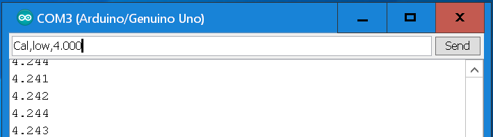 The word "OK" should show up in the list of readings in the serial monitor box and the pH values being reported should now be at or very near 4.000: