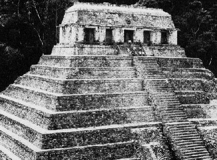The Temple of the Inscription is in Palenque, an important Mayan city located in the highland rainforests of Chiapas. It was built as a tomb for Pacal-Kin, a great Mayan king, in 692 AD. His tomb was discovered full of priceless treasures in 1952, almost 1300 years later. In 1985, the famous Mask of Pacal was stolen along with many other treasures from the Instituto Nacional de Antropologia in Mexico City. It was recovered three years later.