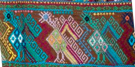You will find some of the same patterns we explored in beads occur in weavings, as well as new ones. For example there are some Mayan patterns below. Experiment with the simulation at the link below: