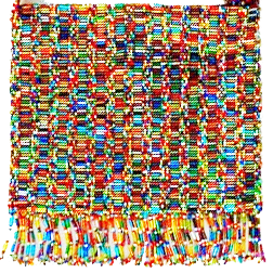 Estos “diseños estadísticos” aparecen algunas veces en el trabajo con cuentas, aunque son menos comunes que los diseños geométricos. En el diseño Maya que está a la izquierda, se muestran figuras que se ramifican como laberintos, que además tienen una variación de colores aleatoria. En el ejemplo anterior, la variación es sutil — de azul obscuro a azul claro — pero los artistas pueden controlar el rango de variación de acuerdo al gusto propio o el de sus clientes, como se muestra en esta bolsa de cuentas Maya.